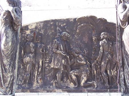 As mentioned before, Christopher Columbus is the gift of Newark's Italian community. Across the country, Italian-Americans richly endowed their cities with statues and monuments like this one. Italian prominenti favored noble artistic gestures like this one, sometimes to the detriment of regular Italians, who did not benefit from as many social welfare agencies as other ethnic groups. (see Beyond the Melting Pot, pg 193) | ||