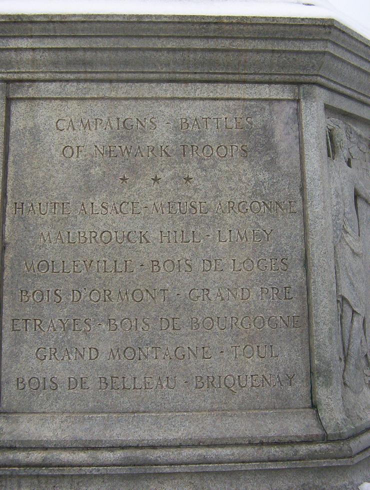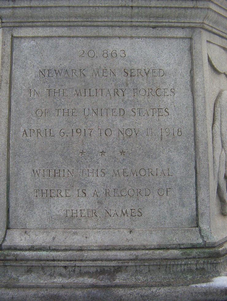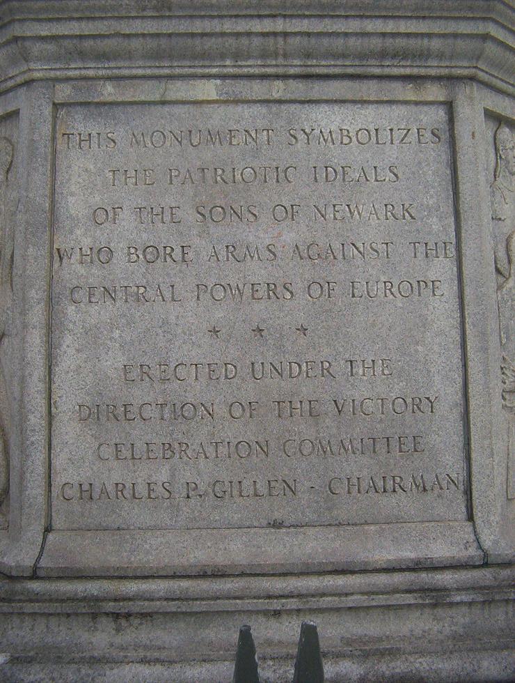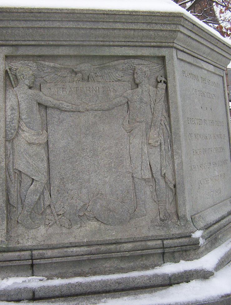 Memorials to the Great War were built all over the United States, Niehaus himself made a good business with soldiers and sailors' monuments in the 1920s. From the perspective of 2005, ironies abound in "Planting the Standard of Democracy." American involvement in the World War did not "make the world safe for democracy," though it did save France and Belgium. In the aftertaste of Iraq, not many Newarkers would look at a "war for democracy" without cynicism. Finally, World War I was not "the World War" as Newarkers in 1923 believed it was. |