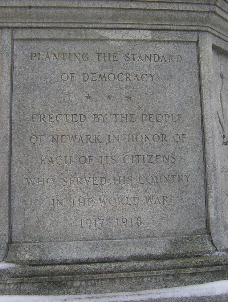 "Planting the Standard of Democracy" was dedicated in front of 30,000 people on December 10th, 1923 -several years before the Wars of America statue in Military Park. The ceremony was part of a 4,000 person parade down Broad Street made up of scores of American Legion lodges, Gold Star mother groups, and other organizations. |